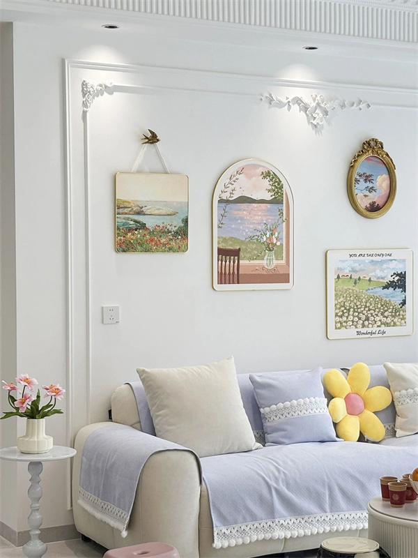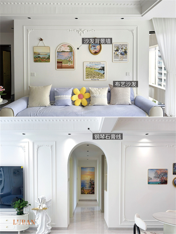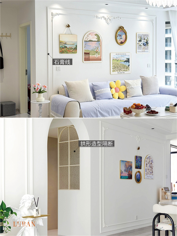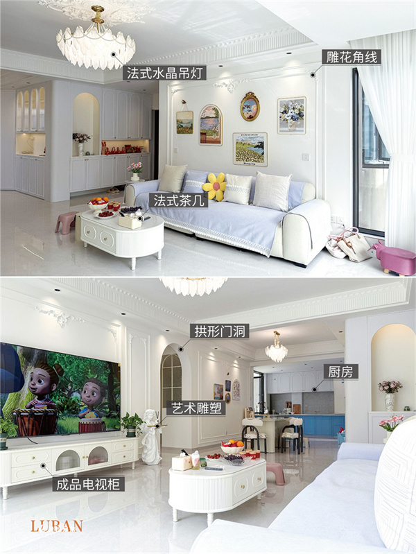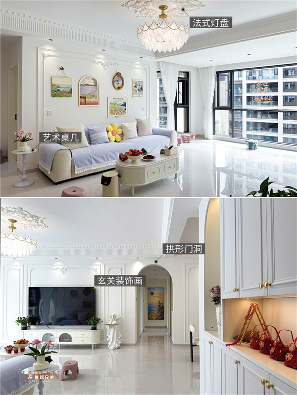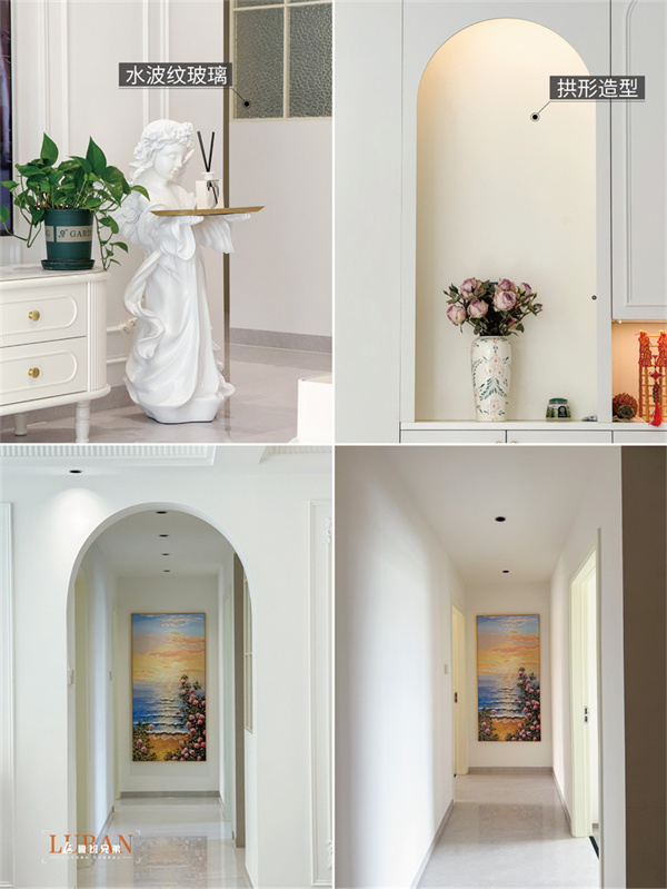 💚 温柔细腻的奶油色作为空间主调,缓缓氤氲纯粹温馨氛围🧸,木质、金属、布艺等材质碰撞,描绘生活质感,🧚♀️简约的石膏线条、精致的雕花、🦋柔美的拱形造型彰显出轻法式的浪漫情调~